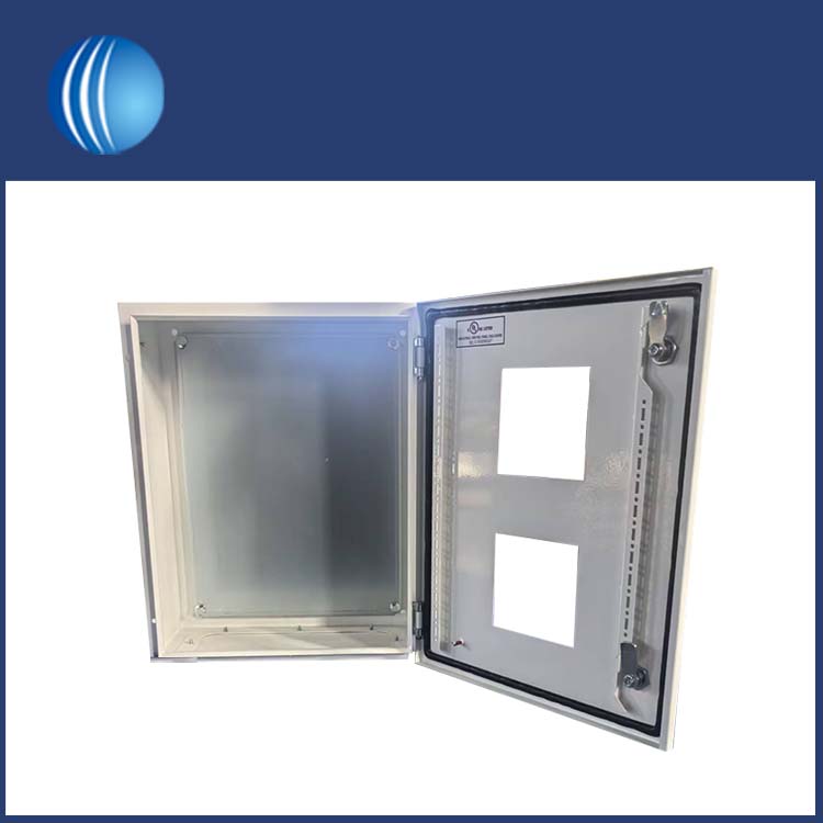 La couleur générale est blanche, avec un revêtement pulvérisé très brillant qui lui donne un aspect très attrayant. Il y a 2 fenêtres carrées réservées sur la surface et des panneaux acryliques transparents sont installés sur les fenêtres pour protéger les composants internes. Cela permet de visualiser les informations clés sans ouvrir la boîte, améliorant ainsi l'efficacité du fonctionnement et de la maintenance tout en évitant les risques de sécurité causés par l'ouverture fréquente de la boîte. Il permet également aux clients de configurer les composants du circuit interne en fonction de leurs propres besoins.